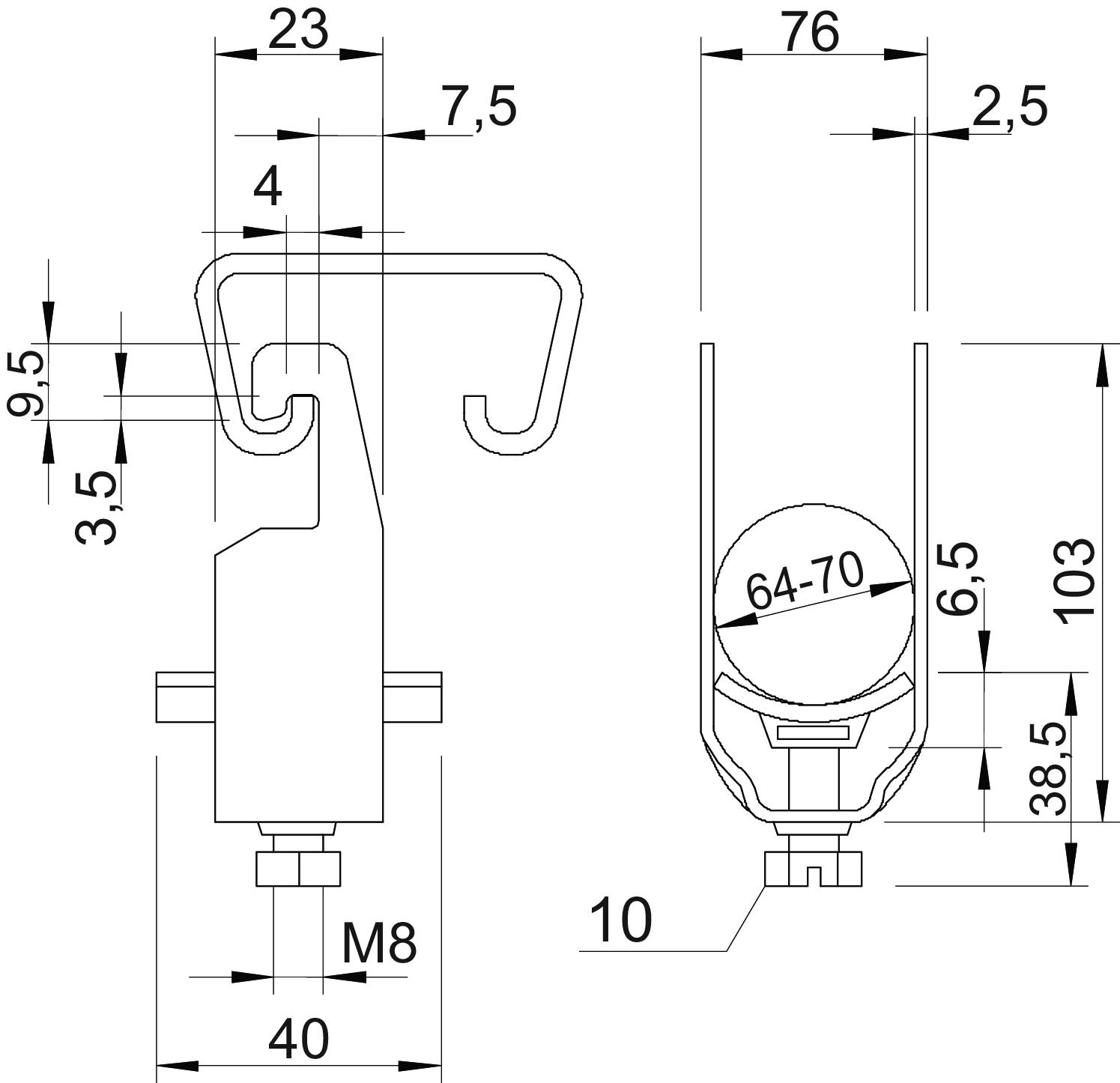 Aantal kabels/ buizen 1 Afm. H 103 mm Afmeting G (mm) M8 CO2-voetafdruk (GWP) van wieg tot poort 0,2729 kg CO₂e / 1 Stuk Dimensie 64-70mm Extra materiaal staal Extra oppervlak vuurverzinkt Halogeenvrij ja Maat A 23 mm Maat B 76 mm Maat C 40 mm Maat L 38,5 mm Maat t 2,5 mm Maat x 6,5 mm Materiaal staal Materiaal van het fixeerplaatje Kunststof Materiaalkwaliteit van het fixeerplaatje Polypropyleen Max. Aandraaimoment 5 Nm Met contra-fixeerplaatje nee Met kunststof wand ja Met metalen wand nee Montagetype Profielrail Oppervlak thermisch verzinkt slagvast nee Spanbereik D max. 70 mm Spanbereik D min. 64 mm voor 1 kabel H 103 mm voor 1 kabel L 38,5 voorrail met sleufbreedte (met interval) max. 22 mm voorrail met sleufbreedte (met interval) mm 18 mm - Alle typen