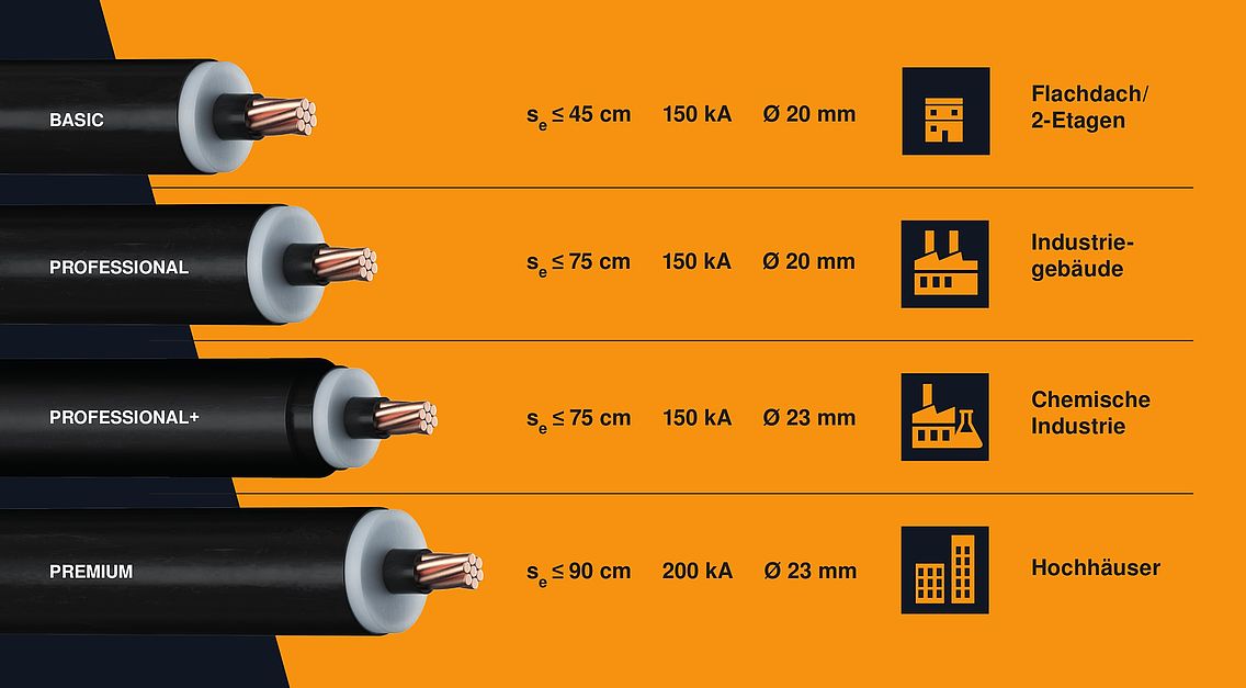 De lichtgrijze isCon®-afleider (isCon® ProPl 75 LGR) is o.a. voor een installatie in de grond geschikt. Als het buiten de grond gelegd wordt, is een verflaag, bijv. gevelverf, mogelijk. Deze leiding voldoet bovendien aan de eis ter bescherming tegen contact- en stapspanningen conform VDE 0185-305-3, sectie 8.1. Je kunt bijv. op het gebied van ingangen van gebouwen de normale bliksemafleider vervangen op de laatste 3 meter om mensen te beschermen tegen gevaarlijke aanraakspanningen