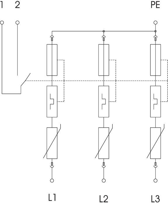 Bliksemstroom- en overspanningsafleider 3-polig met potentiaalvrij signaal contact