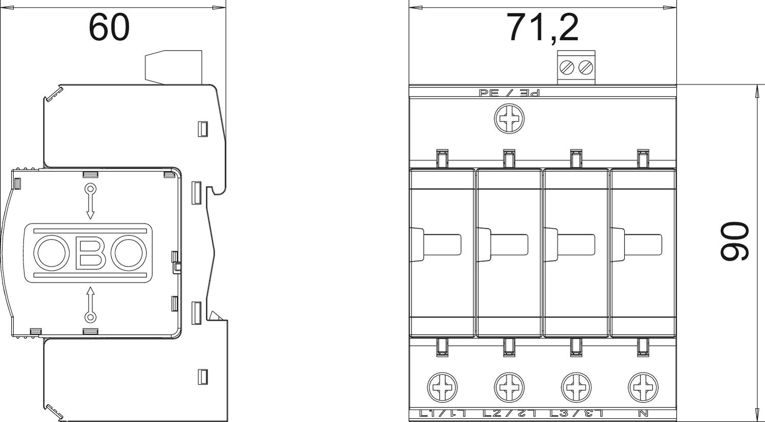 ProductbeschrijvingCombi-afleider, bliksemstroom- en overspanningsafleider type 1+2