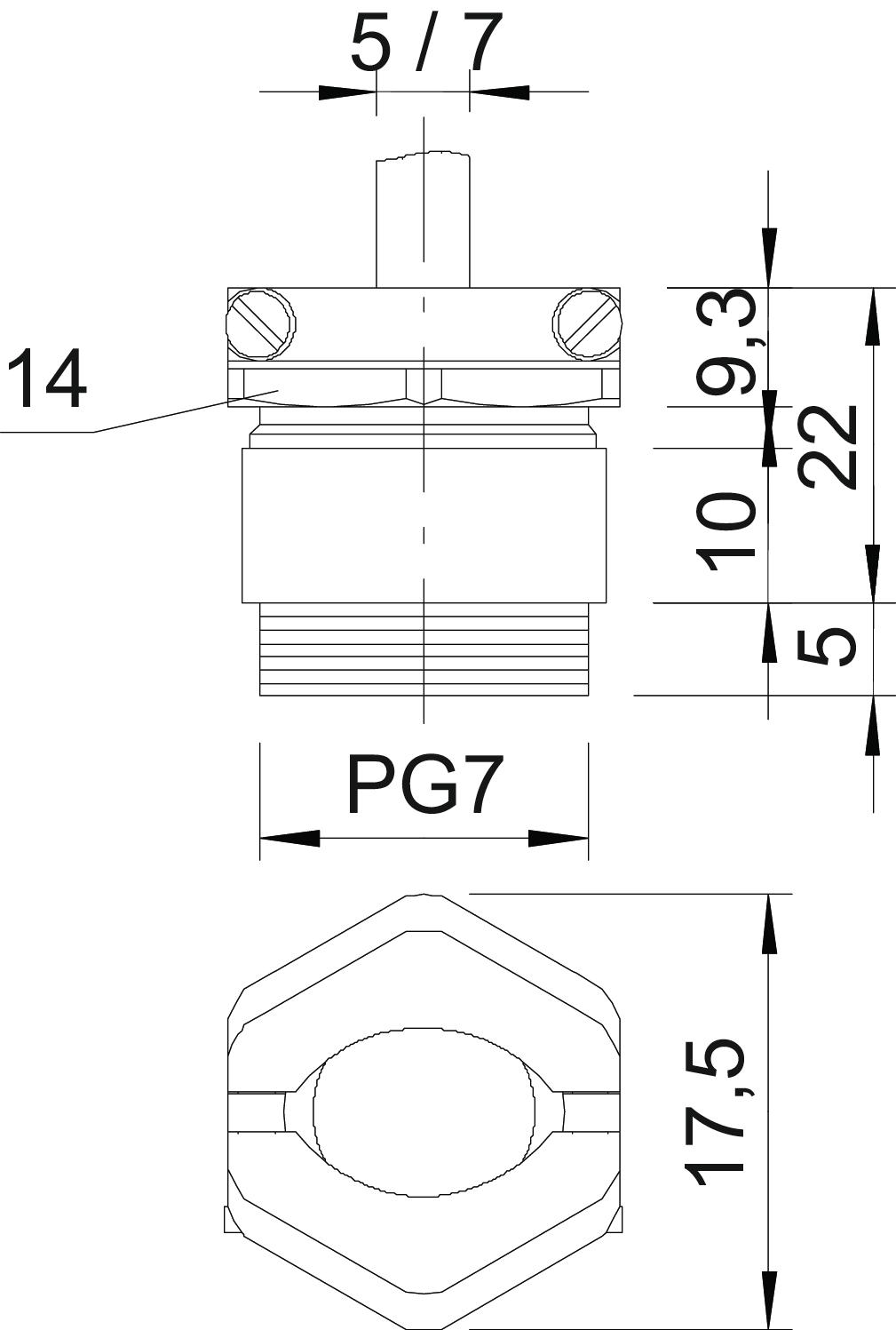 Afdichtbereik D max. 7 mm Afdichtbereik D min. 5 mm Afmeting e 17,5 mm Afmeting L max. 22 mm Beschermingsgraad IP54 CO2-voetafdruk (GWP) van wieg tot poort 0,0489 kg CO2e / 1 Stuk Dimensie PG7 Doorbuigbescherming nee Explosiebeveiligd nee glasvezelversterkt nee Halogeenvrij nee Lengte schroefdraad 5 mm Maat L1 5 mm Maat L2 10 mm Maat L3 9,3 mm Materiaal Messing Meervoudig dichtingsinzetstuk nee Met borgmoer nee Oppervlak vernikkeld Schroefdraad Pg 7 slagvast nee Sleutelwijdte 14 Sleutelwijdte 1 14 mm Sleutelwijdte 2 16 mm Soort afdichting Dichtring Soort schroefdraad Pg Trekontlastingsmogelijkheid ja Voor Ex-zone zonder Wartel voor platte kabel nee - Alle typen