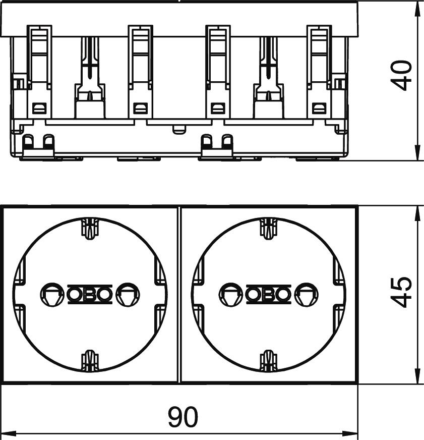 Contactdoos 0°, randaarde, 2-voudig