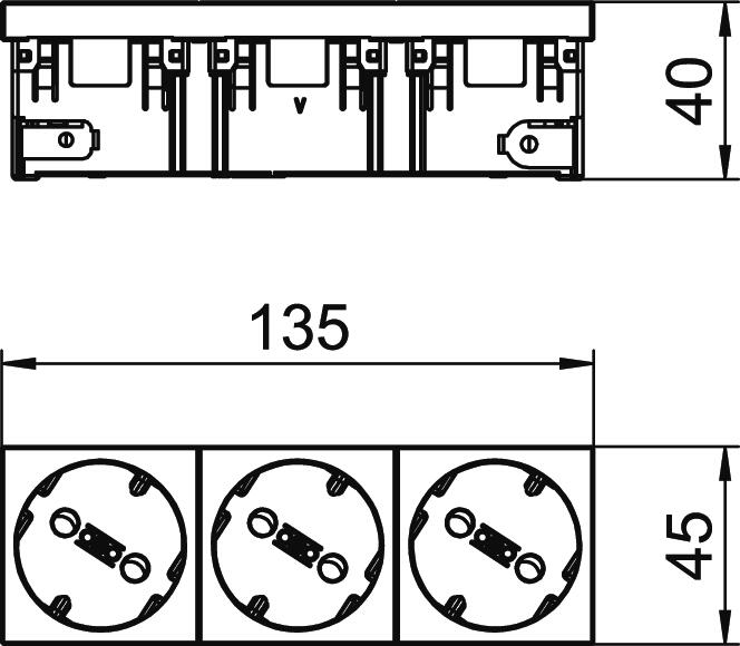 ProductbeschrijvingContactdoos randaarde 3-voudig 33°, met verhoogde bescherming tegen onbedoeld aanraken, met steekklemmen, 2-polig, 16 A, 250 V~, met aansluitklemmen volgens IEC 60884-1.