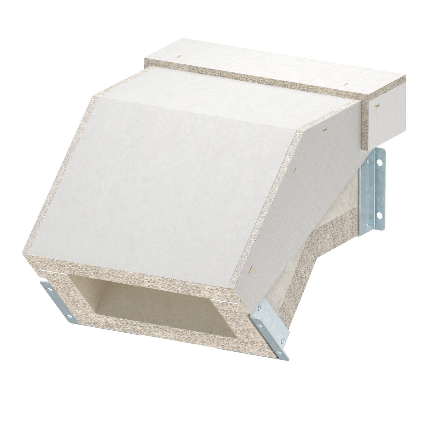 ProductbeschrijvingDaalbocht voor brandwerend kanaal PYROLINE® Con S, type BSKH09-K1021 bestaande uit water- en vorstbestendig lichtgewicht glasvezelbeton voor het creëren van verticale richtingsveranderingen (45°) in het verloop van het kanaal. Volledig geassembleerde verbindingsfittingen zorgen voor een snelle montage ter plaatse, los geplaatste afdekkingen maken snelle revisie en hertoewijzing mogelijk.