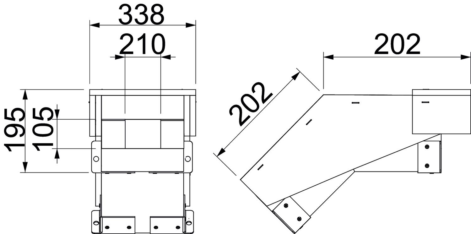 Aantal bevlambare zijden 4 Afm. H 195 mm Afm. h 105 mm Brandweerstandsklasse E - functiebehoud 30 Brandweerstandsklasse I - installatiekanaal 90 Breedte 338 mm Dekselbevestiging los Dimensie 105x210 Hoek van de bocht 45 ° Kleur grijs Maat B 338 mm Maat b 210 mm Maat L 226 mm Materiaal Lichtbeton, glasvezel Materiaal van het isolatiemateriaal Glasvezellichtbeton Met perforatie nee Ommanteling zonder Scheidingschotten mogelijk ja - Alle typen