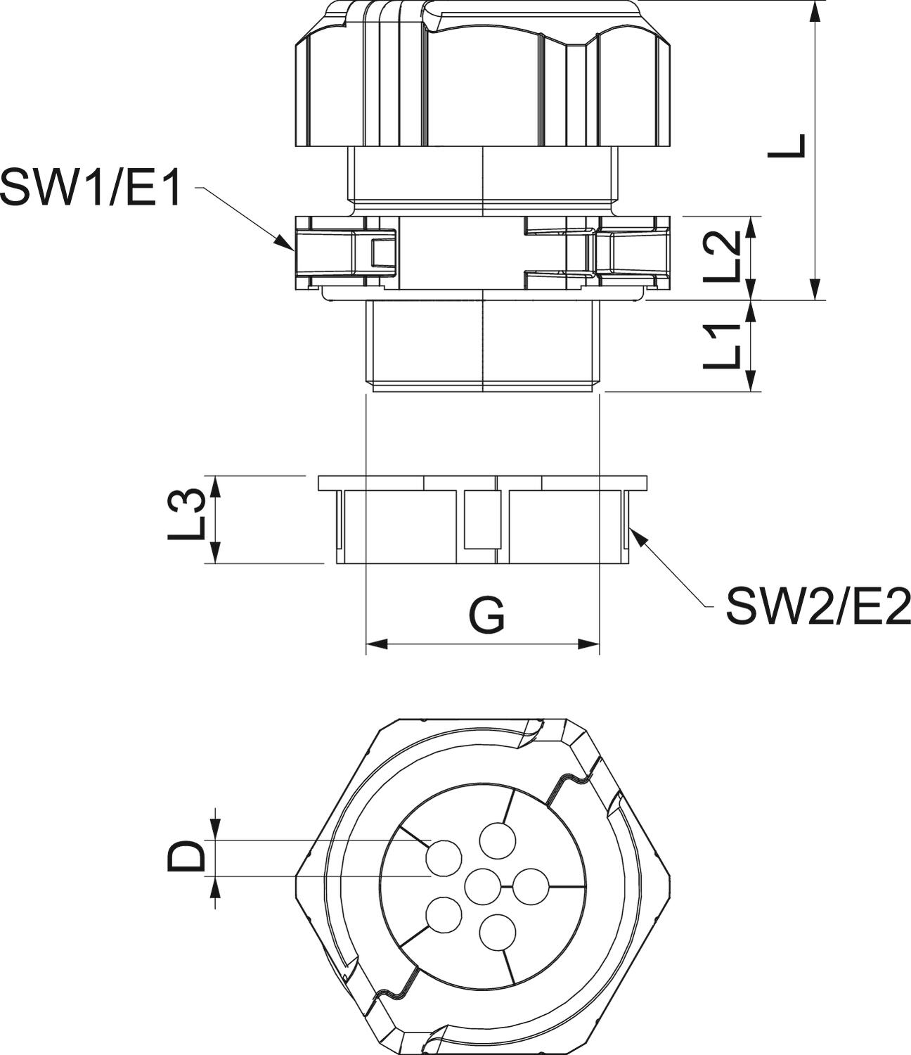 De dichtingsinzetstukken zijn bedoeld voor het invoeren van meerdere kabels door een wartel. Bij het aandraaien van de kabelwartel worden, afhankelijk van de toepassing, de opgegeven boringsdiameters 1-2 mm in diameter verkleind