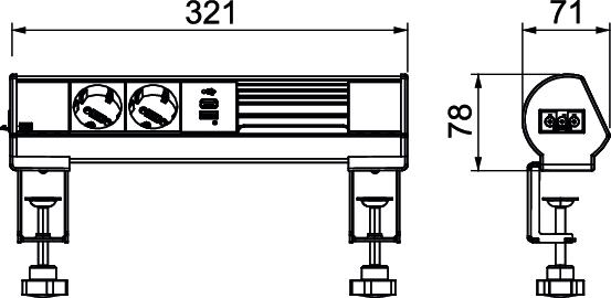 Deskbox met bevestigingsklem, 2 contactdozen, USB-charger