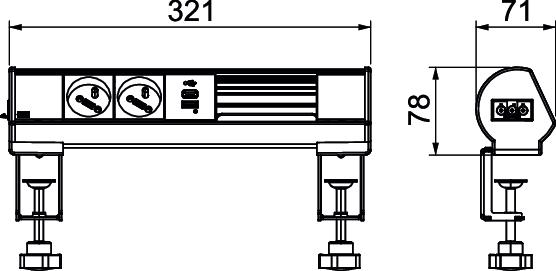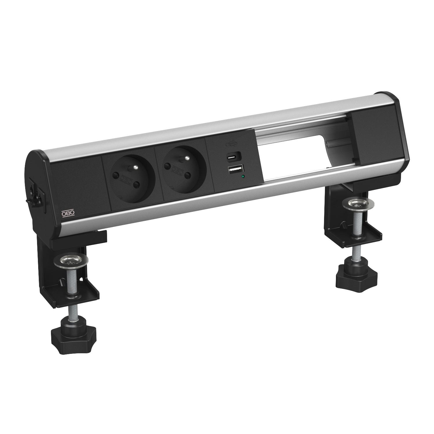 Deskbox met bevestigingsklem, 2 NF-contactdozen, USB-charger