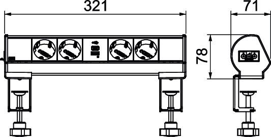 Deskbox met bevestigingsklem, 4 contactdozen, USB-charger