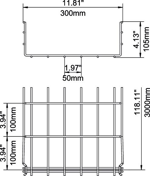 Voor de draadgoot zijn geen extra verbinders nodig, deze wordt eenvoudig in elkaar gestoken. De maaswijdte is 50 x 100 mm.