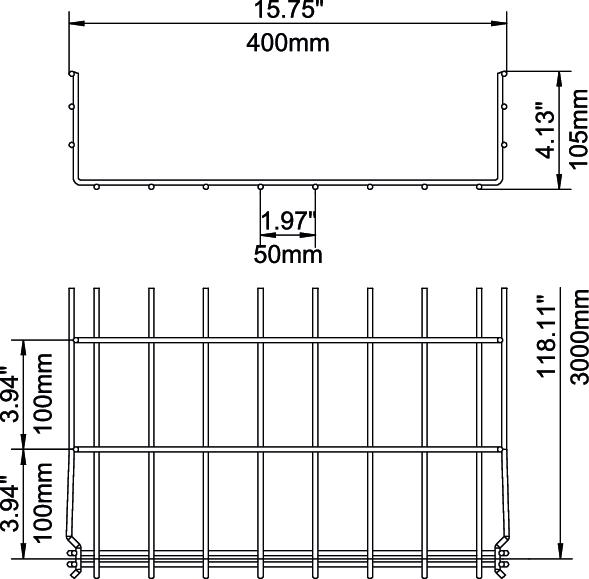 Voor de draadgoot zijn geen extra verbinders nodig, deze wordt eenvoudig in elkaar gestoken. De maaswijdte is 50 x 100 mm.