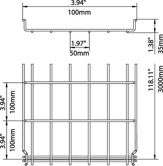 Voor de draadgoot zijn geen extra verbinders nodig, deze wordt eenvoudig in elkaar geklikt. De maaswijdte is 50 x 100 mm (uitzondering GRM 35/50 = 20 x 100 mm).