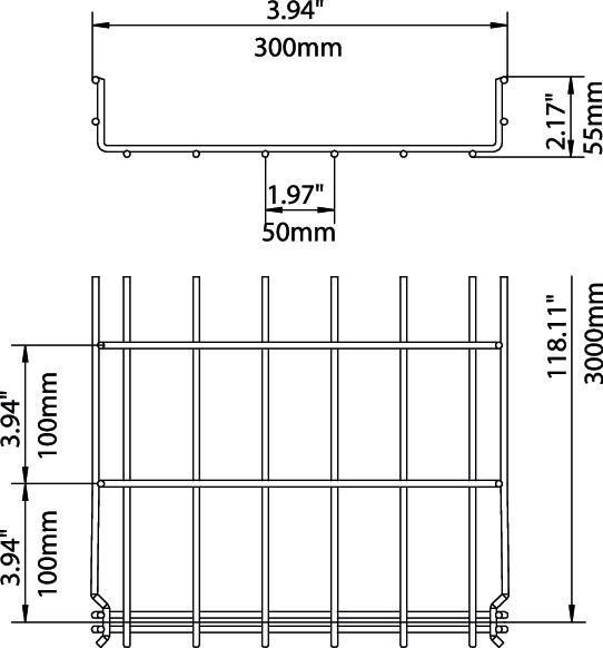 Voor de draadgoot zijn geen extra verbinders nodig, deze wordt eenvoudig in elkaar geklikt. De maasgrootte is 50 x 100 mm (uitgezonderd GRM 55/50 = 20 x 100 mm).