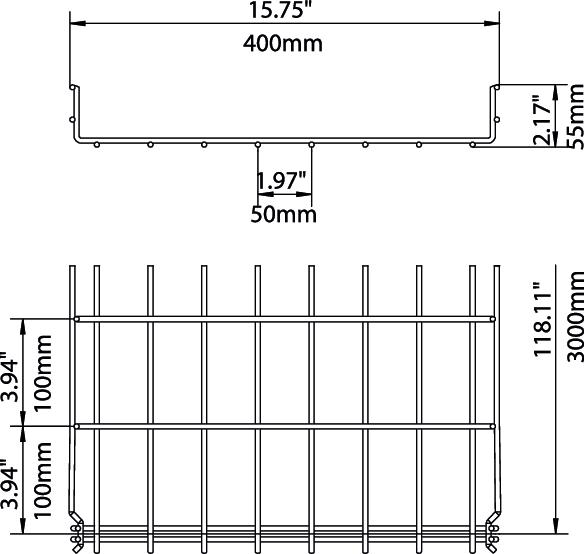 Voor de draadgoot zijn geen extra verbinders nodig, deze wordt eenvoudig in elkaar geklikt. De maasgrootte is 50 x 100 mm (uitgezonderd GRM 55/50 = 20 x 100 mm).