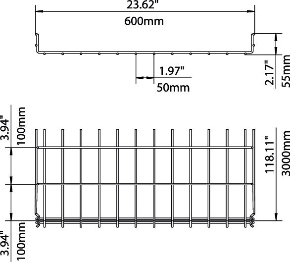 Voor de draadgoot zijn geen extra verbinders nodig, deze wordt eenvoudig in elkaar geklikt. De maaswijdte is 50 x 100 mm (uitgezonderd GRM 55/50 = 20 x 100 mm).