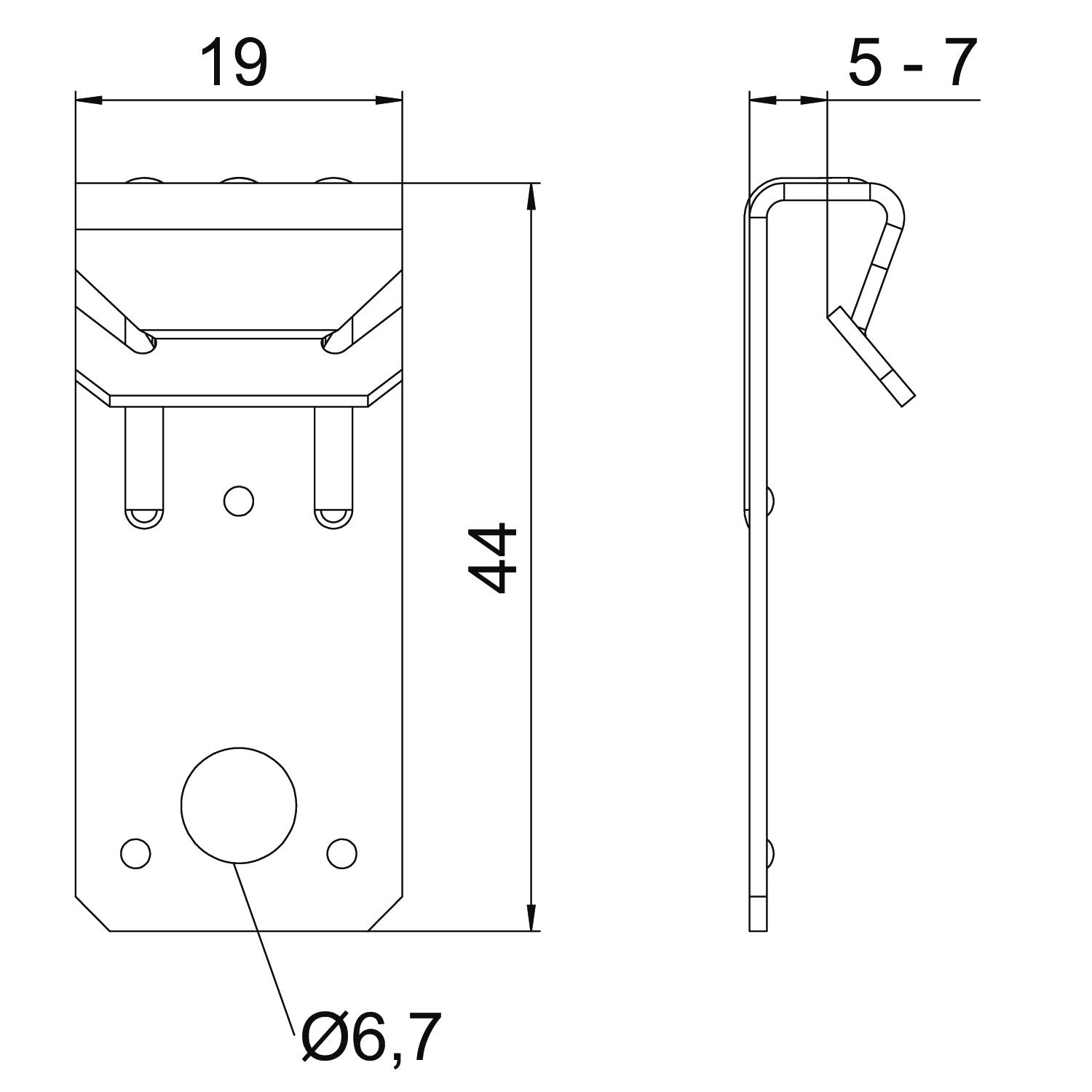Aansluittype/-component Gat Breedte 19 mm Breukbelasting 0,72 kN Dimensie 5-7mm Flensdikte F max. 7 mm Flensdikte F min. 5 mm Hoogte 10 mm Kleur zink Lengte 43,5 mm Materiaal staal Oppervlak Zinklamel Scharnier instelbaar nee Scharnierend nee Type bevestiging klemmen - Alle typen