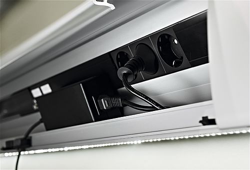 De verfijnde uitstraling en het hoogwaardige design van het kanaal kunnen optioneel nog beter worden benadrukt. Want aan de onderkant van het GAD-apparatuurinbouwkanaal kan een optionele LED-lichtbalk worden gemonteerd. Muren en de ruimtes onder het kanaal worden zo subtiel verlicht.