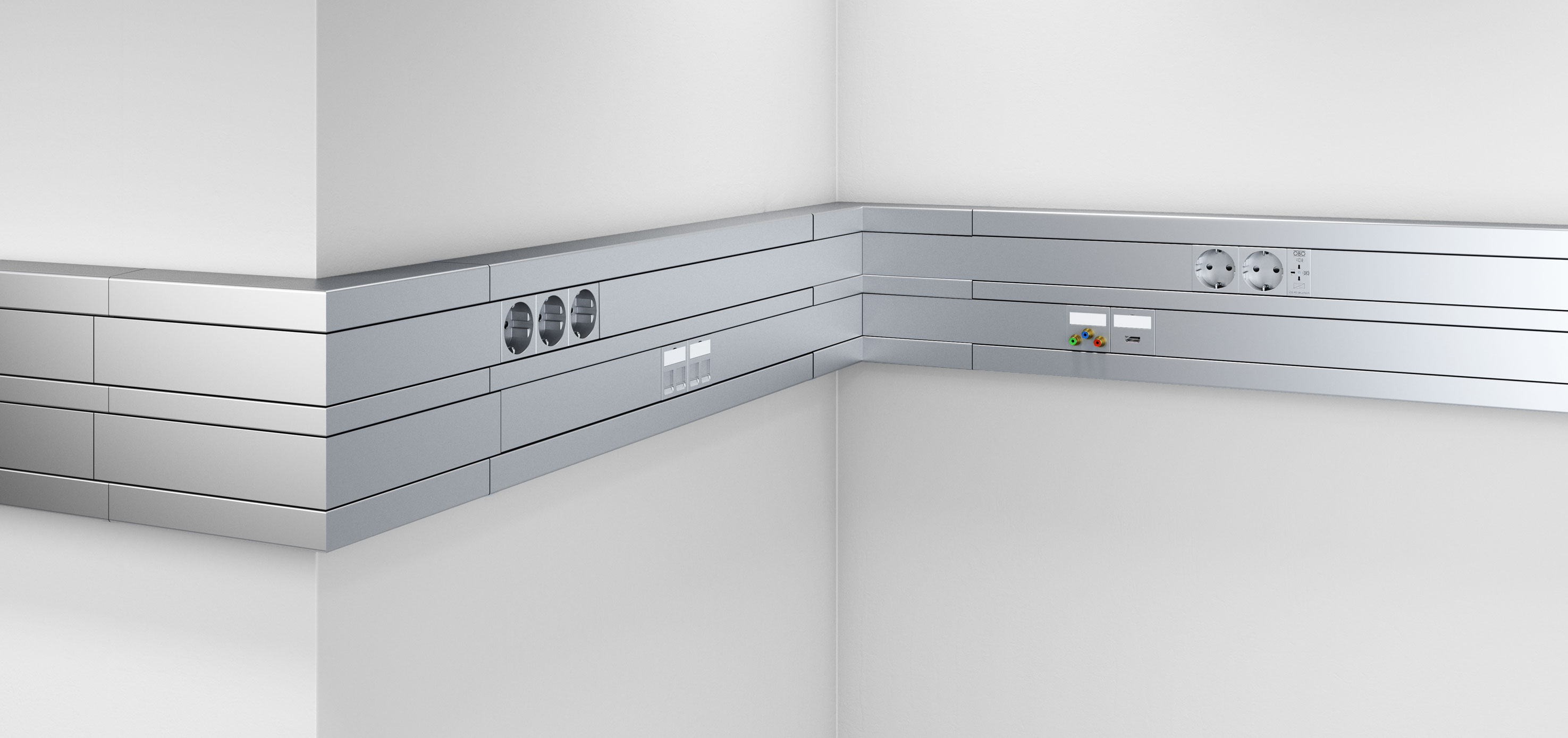 Oppervlaktekwaliteit plus afgewogen vorm: dat is de Rapid 45-2 in de aluminium uitvoering. Technische precisie ontmoet hier een elegant uiterlijk van het installatiekanaal en geeft elke installatieomgeving meerwaarde.