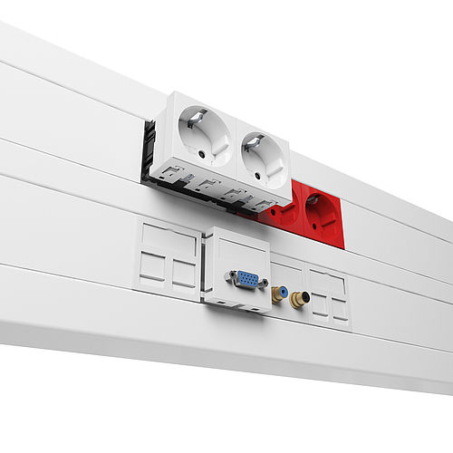 Schakelaars, stopcontacten en datatechniekelementen van de OBO-reeks Module 45 en Module 45-connect zijn de perfecte aanvulling voor de Rapid 45-2. Deze kunnen met slechts één handeling eenvoudig in de kanaalopening worden geklikt. Een compact systeem, dat snel kan worden gemonteerd en probleemloos kan worden uitgebreid. De inspanning die nodig is om de apparaten te installeren is aanzienlijk lager dan bij conventionele installatiemethoden. Bijkomende componenten, zoals inbouwdozen of adapters, zijn overbodig.