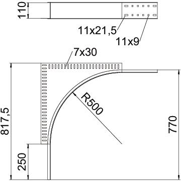 ProductbeschrijvingHoekaanbouwstuk voor verspankabelgoten en -kabelladders met een zijhoogte van 110 mm.