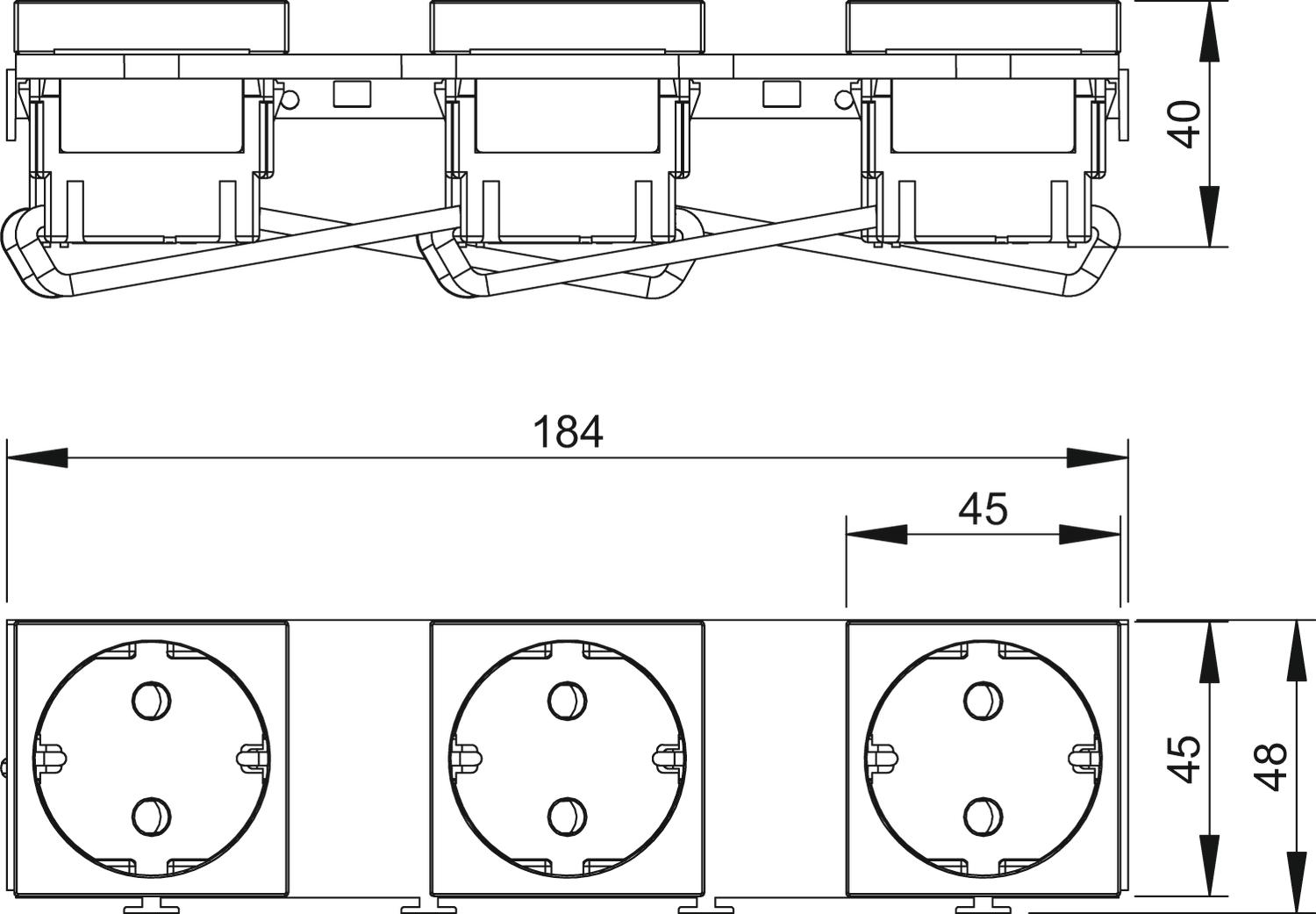 ProductbeschrijvingVoorgemonteerde inbouwramen met drie 1-voudige contactdozen, voor de inbouw in moduledragers MT45V.