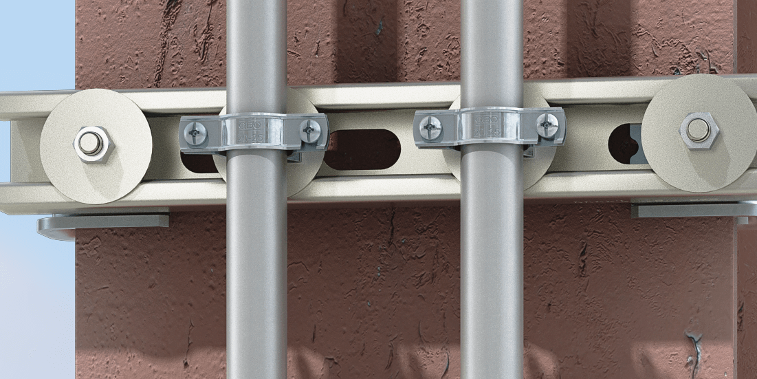 Naast de directe wandmontage bestaat ook de mogelijkheid, de afstandsklemmen aan bouwdelen te bevestigen, bijvoorbeeld met vulringen op profielrails of kabeltrajecten.