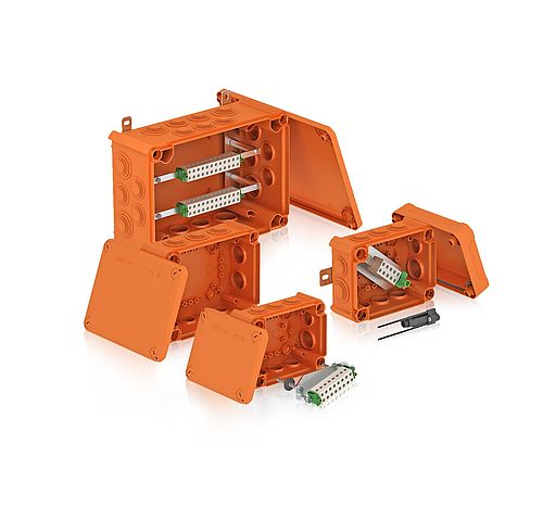 Een bijzondere variant van de T-serie: met de kabeldozen uit de bevinden zich in het OBO-productgamma kabeldozen, die voor het elektrische functiebehoud in geval van brand getest zijn.