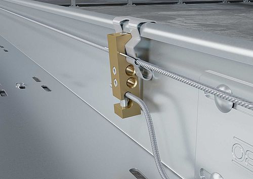 Met de klemveer KFL en de aansluitklem AKL wordt het betreedbare kabelgootsysteem snel en schroefloos in de functiepotentiaalvereffening opgenomen. De elektrische geleidbaarheid conform IEC 61537, geleidingssystemen voor kabels en leidingen, wordt zo gewaarborgd. De klemveer wordt eenvoudig zonder boren op de kabelgootrail geklemd en de geleider wordt in de klemveer gedrukt om contact te maken. De aansluitklem zorgt voor het eenvoudig maken van aftakkingen van de geleider.