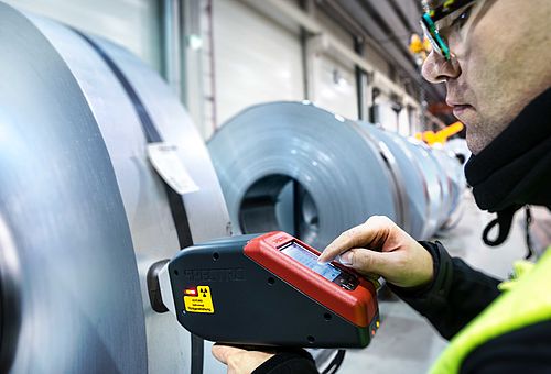 In de hoofdvestiging in Menden wordt op meer dan 30.000 vierkante meters jaarlijks circa 18 miljoen meter kabelgootsysteem gefabriceerd. 10,5 miljoen meter daarvan zijn kabelgoten, waartoe ook het betreedbare kabelgootsysteem behoort. De grondstof hiervoor wordt al bij de goederenontvangst aan strenge kwaliteitscontroles onderworpen. Onze medewerkers nemen de materiaalkwaliteit, oppervlakte-afwerking en oppervlaktedikte nauwkeurig onder de loep. Vervolgens krijgt elke spoel een etiket met alle belangrijke informatie, een soort paspoort, dat door de hele productie kan worden gevolgd.