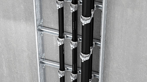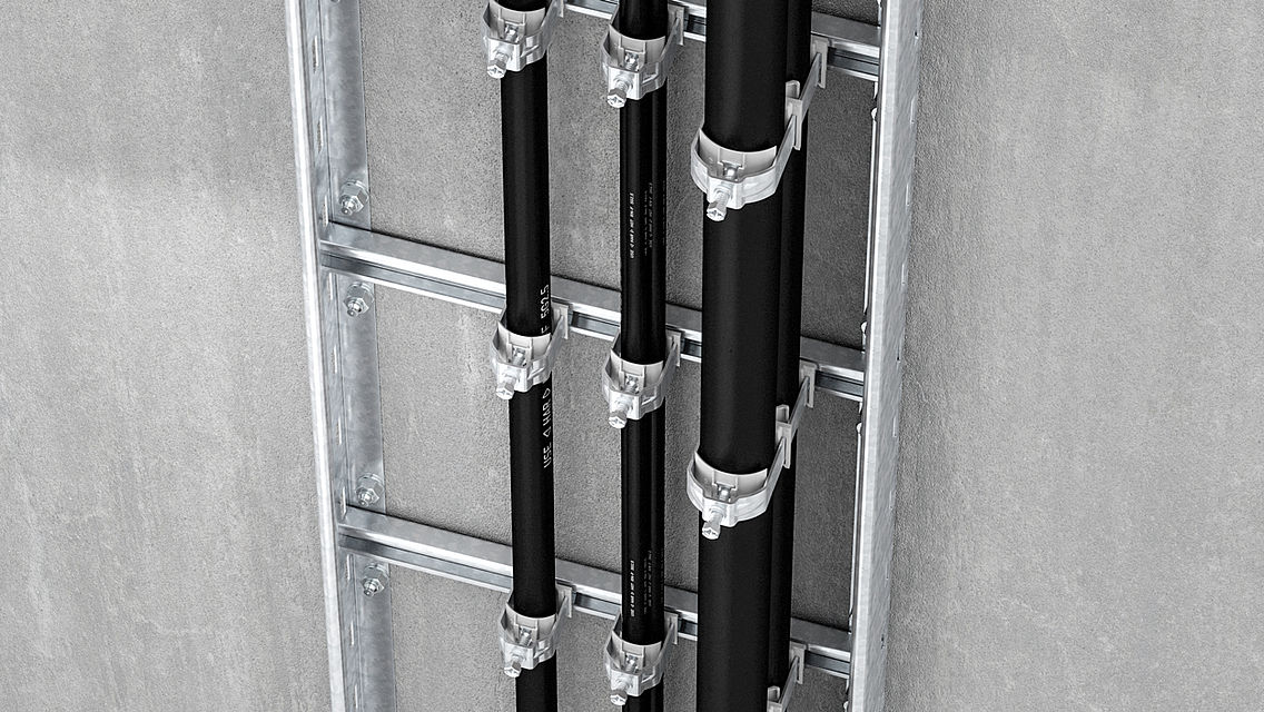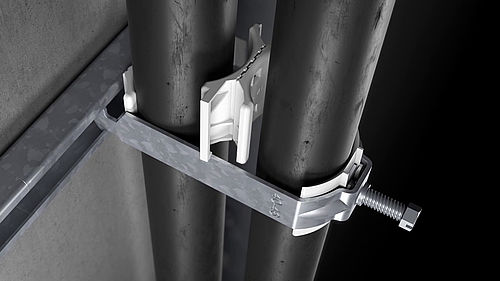 De universele tegenplaat maakt ook de daadwerkelijke installatie een stuk eenvoudiger. De tegenplaat wordt van bovenaf ingebracht voordat de klem wordt vastgedraaid. Hierdoor staat tijdens de installatie van de beugelklem meer ruimte ter beschikking - dat vergemakkelijkt de installatie in moeilijk toegankelijke bereiken. Hierdoor kan de tegenplaat ook zonder problemen achteraf worden aangebracht, aangezien de beugelklem niet volledig gedemonteerd hoeft te worden.