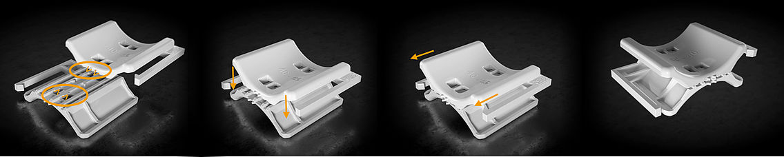 Door een gepatenteerde, intelligente vorm op de achterkant kunnen twee identieke tegenplaten tot één dubbele wand verbonden worden. Twee pijlen op zowel de achter- als onderkant van de universele tegenplaten helpen om deze juist te combineren. Tot dubbele wand gecombineerde universele tegenplaten kunnen op ieder moment zonder gereedschap losgemaakt worden en afzonderlijk of opnieuw als dubbele wand worden gebruikt.
