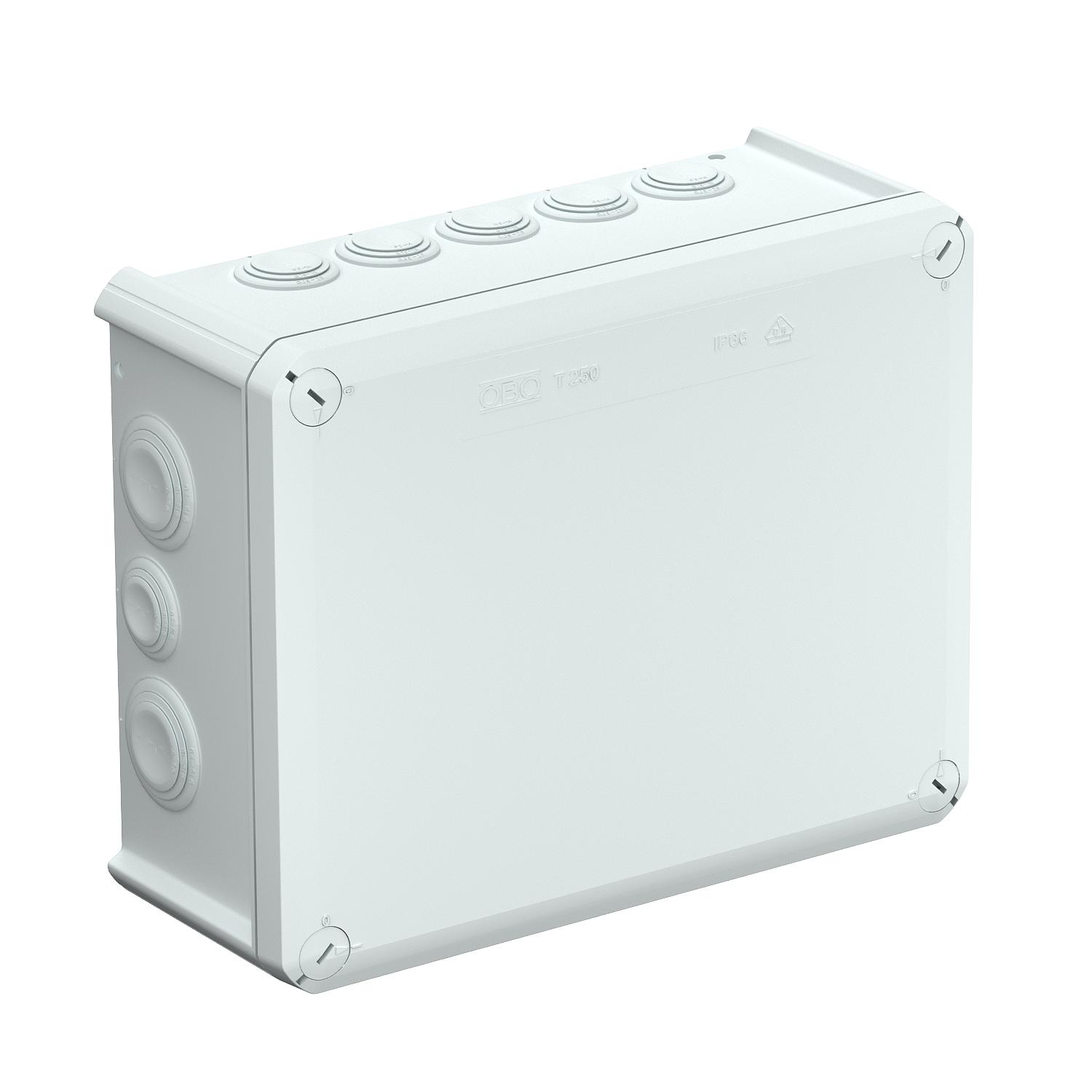 ProductbeschrijvingKabeldoos voor verbinden van kabels en leidingen in binnenopstelling en beschermde buitenopstelling. Rechthoekige vorm met kabelinvoeren aan de zijkanten en doorbreekinvoeren in de bodem. Geschikt voor wand-/plafondmontage en montage op montageplaten en schroefdraad in de bodem. Met de mogelijkheid tot binnenbevestiging en montage via het hoekelement. Deksel met snelsluiting, verzegelbaar. Gefabriceerd van halogeenvrij en UV-bestendig materiaal. Kabeldoos conform NEN-EN-IEC 60670. Vlamvertragend volgens DIN EN 60695-2-11, testtemperatuur 650°C. Slagvastheid IK05 conform NEN-EN 50102.