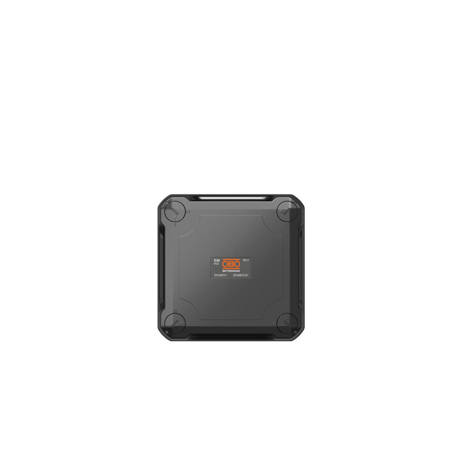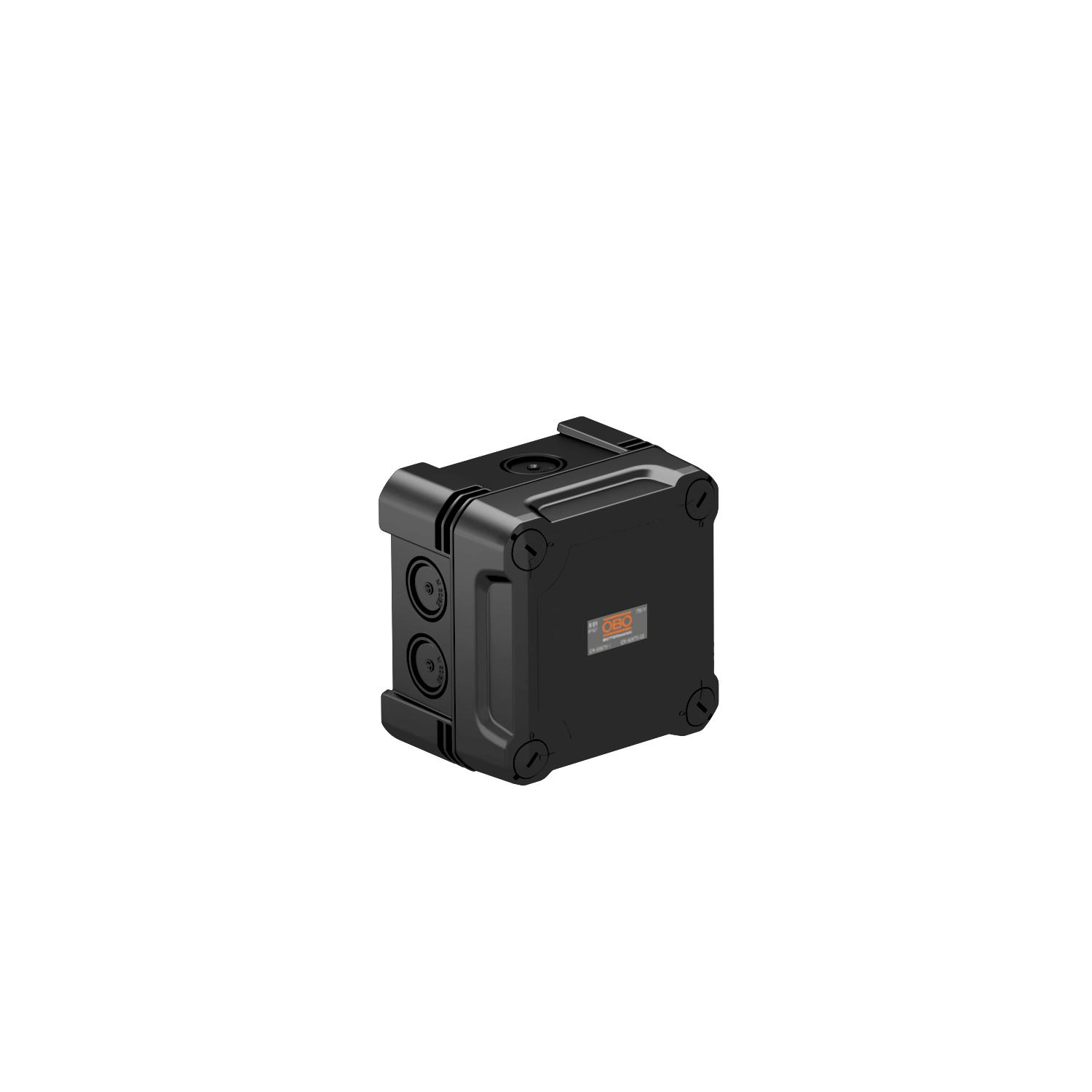Kabeldoos conform DIN EN 60670. Vlamvertragend volgens DIN EN 60695-2-11, testtemperatuur 650°C. Slagvastheid IK09 conform NEN-EN 50102. Beschermingsgraad IP67 conform NEN-EN-IEC 60529.