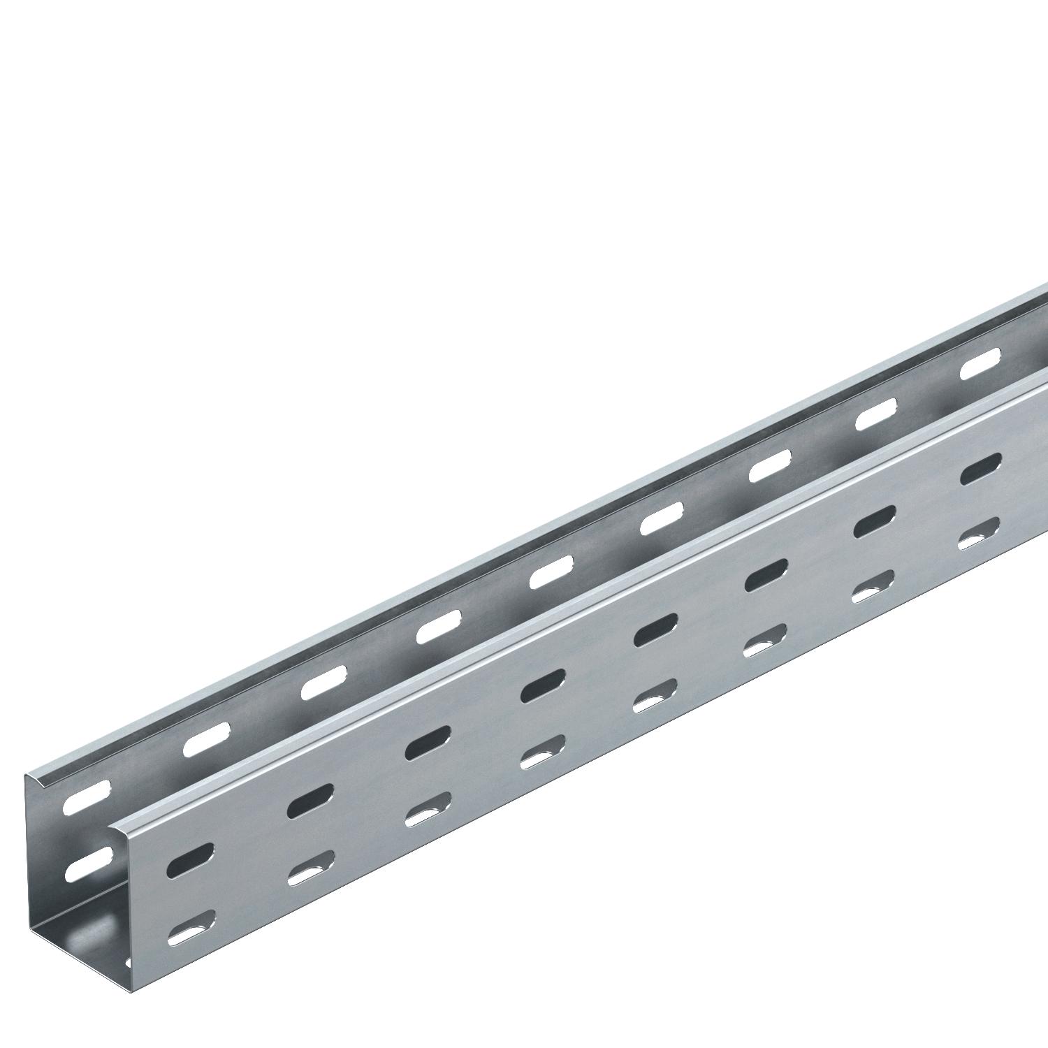 Kabelgoot met doorlopende bodem- en zijperforatie alsmede centrale perforatie (Ø11 mm) in de bodem voor extra bevestigingen.