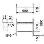 ProductbeschrijvingKabelladder met zijperforatie, zijhoogte 110 mm, met vastgeklonken, naar boven toe geopende C-profielsporten.