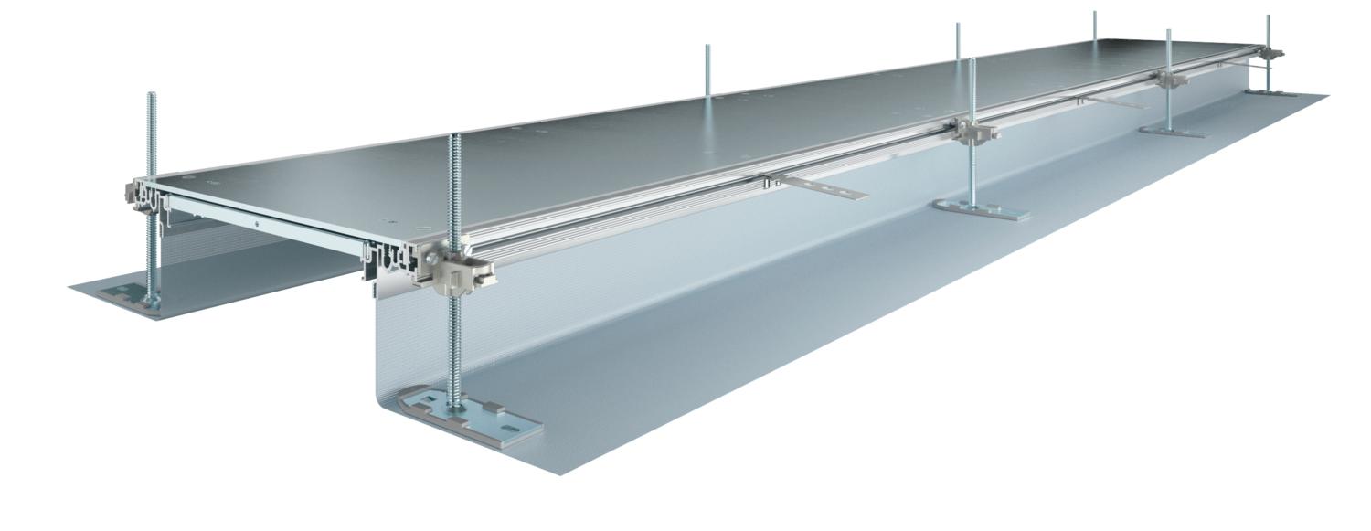 ProductbeschrijvingMontageklare kanaaleenheid, gelijkliggend met de dekvloer voor de distributie van kabels, bestaande uit 3 systeemdeksels, 2 zijprofielen met flexibele zijwand van metalen weefsel, vloerbekledingsprofielen met H = 3 mm. Voor droge binnenruimten met droog onderhouden vloeren. Met het bijbehorende systeemtoebehoren ook geschikt voor nat onderhouden vloeren. In de leveringsomvang zijn begrepen: 6 in hoogte nivelleerbare bevestigingshoeken, 6 dekvloerankers en 3 dekselvoegafdichtingen bij nominale kanaalbreedtes 200, 300 en 400 of 6 dekselvoegondersteuningen bij kanaalbreedtes 500 en 600. De noodzakelijke nivelleereenheden voor de dekselondersteuningen 500 en 600 worden niet meegeleverd maar moeten afhankelijk van de gewenste kanaalhoogte afzonderlijk worden besteld. Alle kanalen worden tot en met de breedte 400 met voorgemonteerde deksels geleverd.