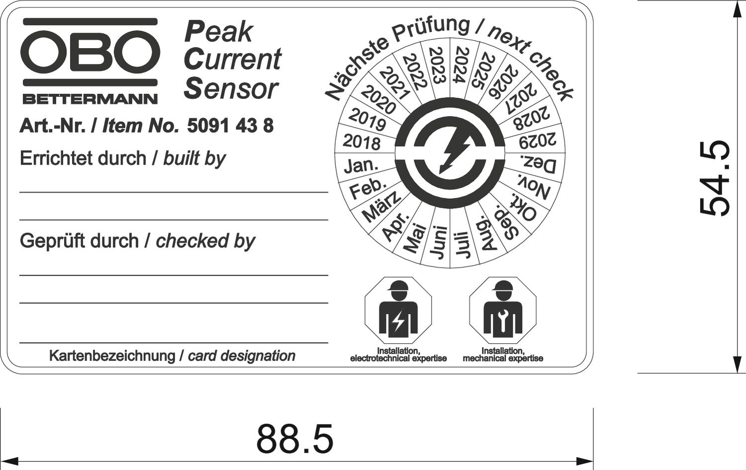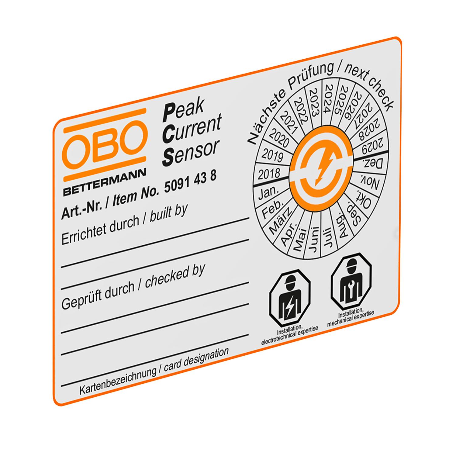 ProductbeschrijvingPeak-Current-Sensor (PCS)-kaart voor registreren van impuls-/bliksemstromen. Een constante controle of een bliksem in het bliksembeveiligingssysteem is ingeslagen, en hoe hoog de laatste bliksemstroom in kA was, kan zo op eenvoudige wijze door de exploitant, bliksembeveiligingsbedrijf of deskundige worden uitgevoerd. Hierbij ondersteunt het opgedrukte onderhoudscircuit en de tekstvelden die conform NEN-EN-IEC 62305 met gedefineerde tussenpozen uit te voeren onderhoudswerkzaamheden aan het totale bliksembeveiligingssysteem.