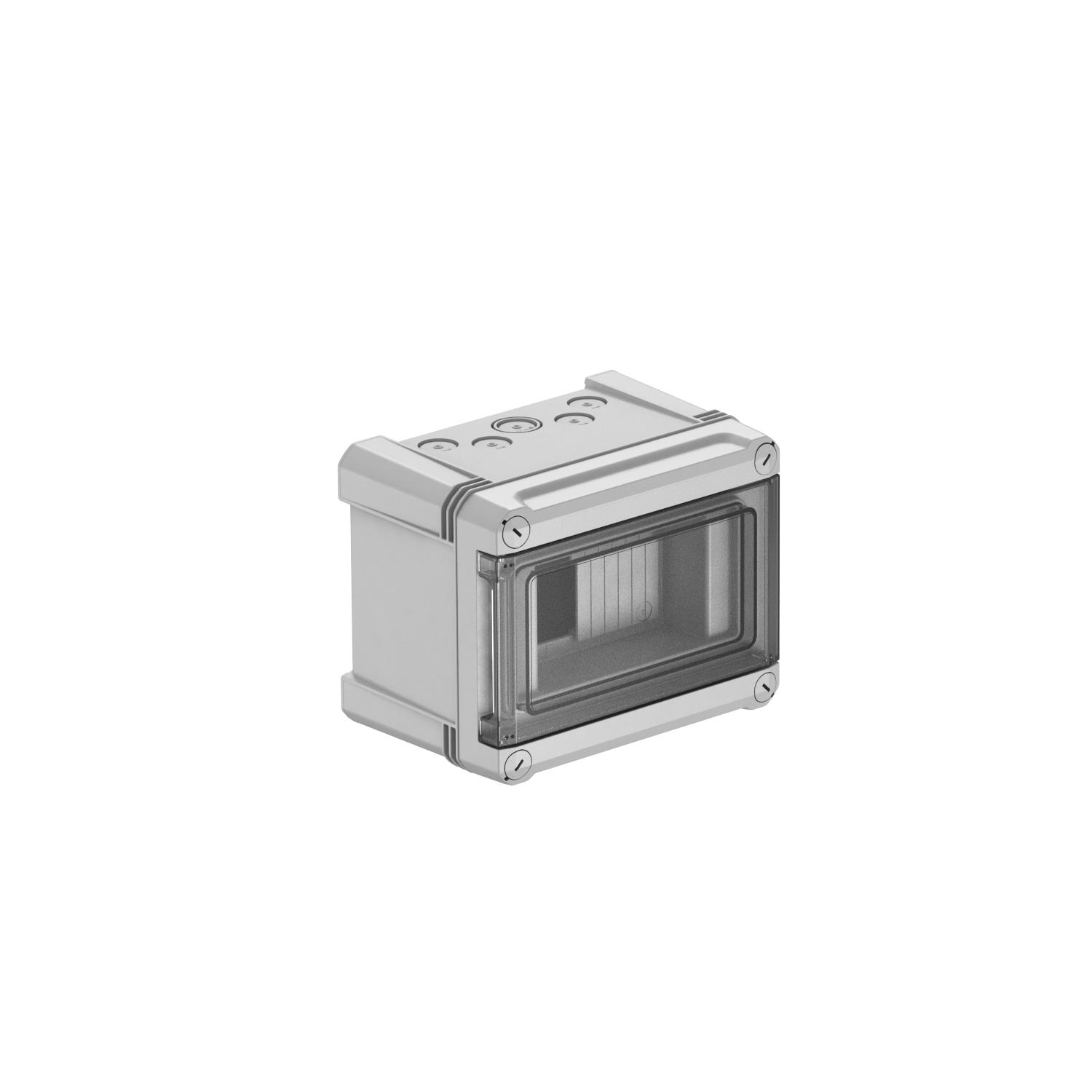 ProductbeschrijvingMiniverdeler met klemmenstrook voor opbouwmontage, voor de stroomverdeling binnen en in beveiligd buitengebied, conform NEN-EN 439-3. Met voorgemonteerde 35 mm DIN-rail. Beschermingsklasse IP66 en beschermingsgraad IK06. Transparante deksel om vast te schroeven, met uitsparing.