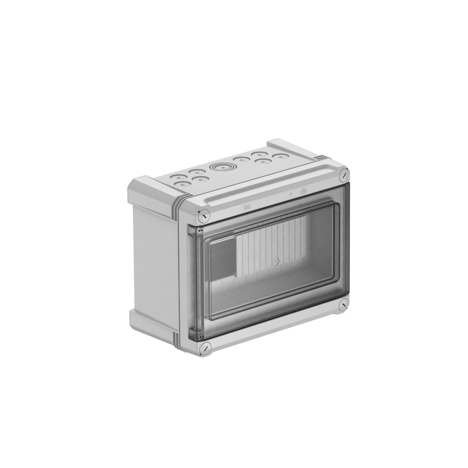 ProductbeschrijvingMiniverdeler met klemmenstrook voor opbouwmontage, voor de stroomverdeling binnen en in beveiligd buitengebied, conform NEN-EN 439-3. Met voorgemonteerde 35 mm DIN-rail. Beschermingsklasse IP66 en beschermingsgraad IK06. Transparante deksel om vast te schroeven, met uitsparing.
