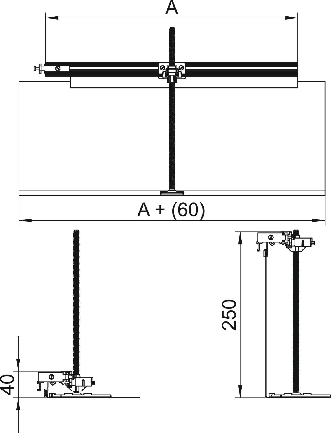 Montageset voor hoekaftakking naar links, hoogte 40-240 mm