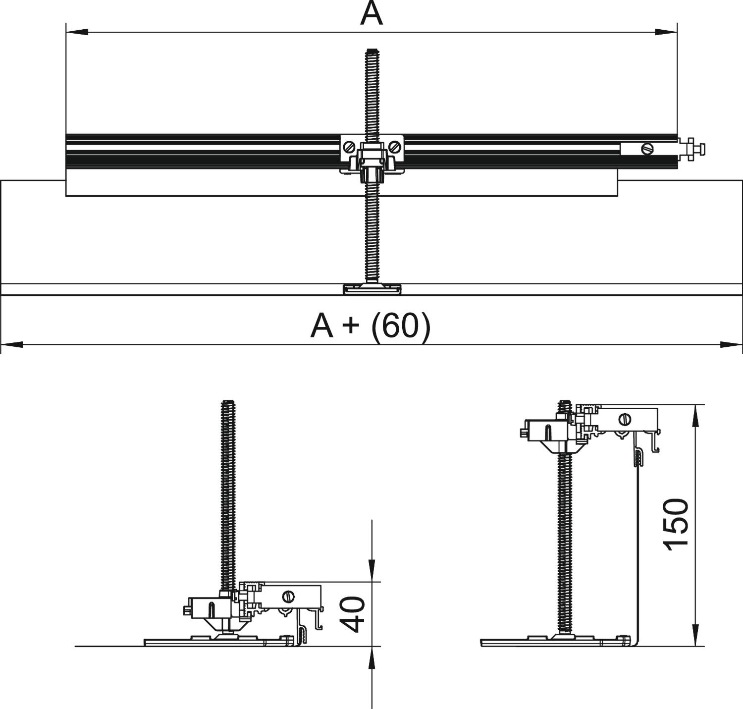Montageset voor hoekaftakking naar rechts, hoogte 40-150 mm