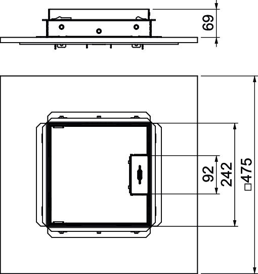 ProductbeschrijvingNivelleerbare en van de vloer losgekoppelde cassette met nominale grootte 9 met snoeruitlaat, voor inbouw van toebehoren in droog gereinigde vloeren, voor inbouw in ondervloerdozen UZD250-3 of UZD350-3, telkens in combinatie met een montagedeksel DUG ../ 9 of in UGD250- 3/9 of UGD350-3 / 9. De montage wordt via nivelleerhoeken (afzonderlijk te bestellen) uitgevoerd in het aluminium frame van de vloerdozen.