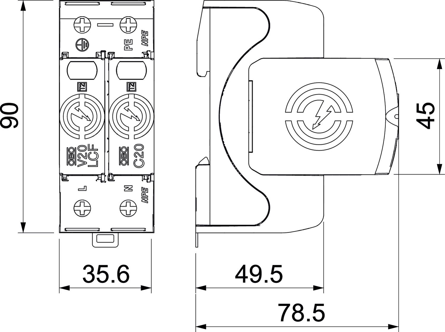Overspanningsafleider V20, lekstroomvrij, 1-polig + NPE