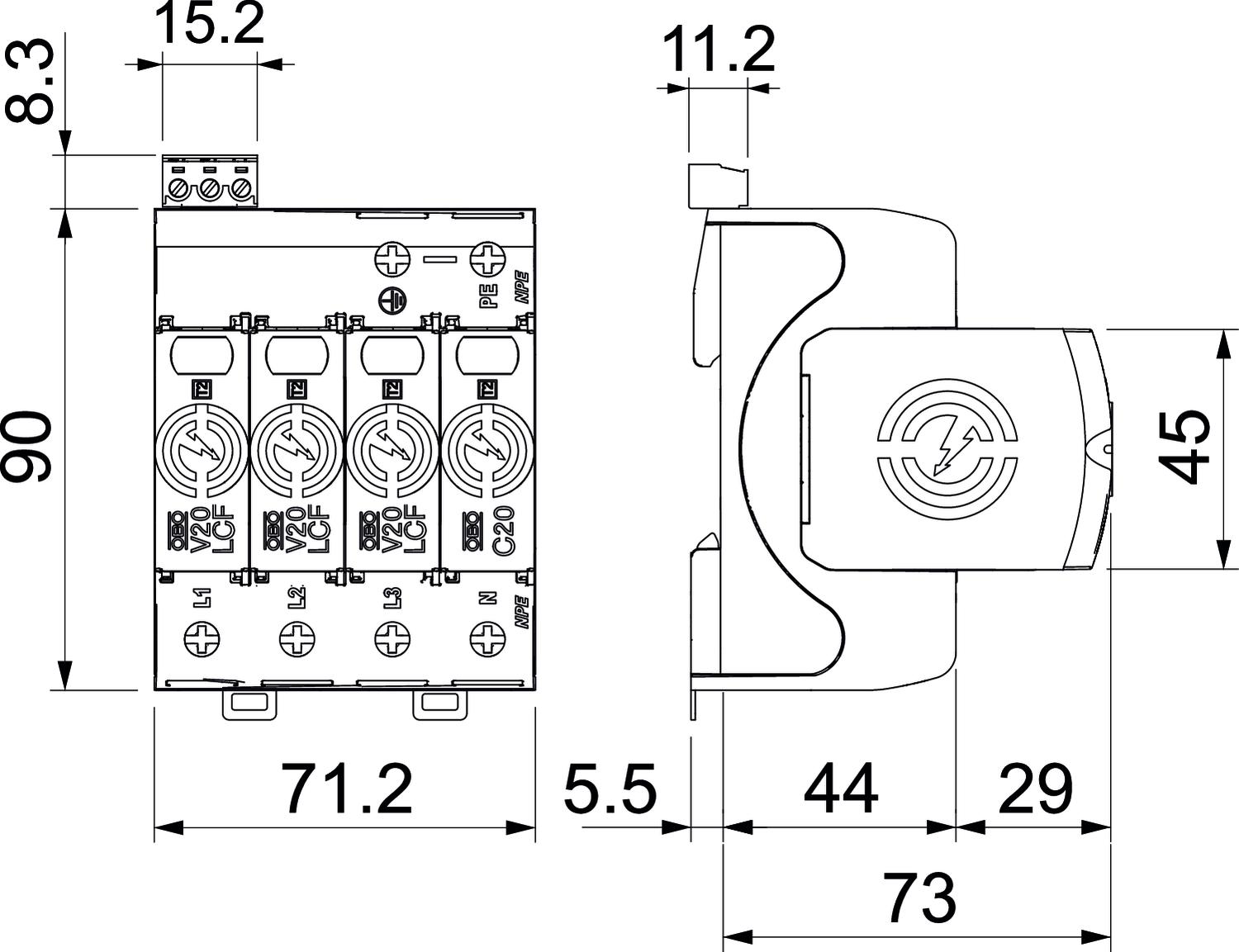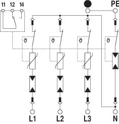 Overspanningsafleider V20, lekstroomvrij, 3-polig + NPE + FS