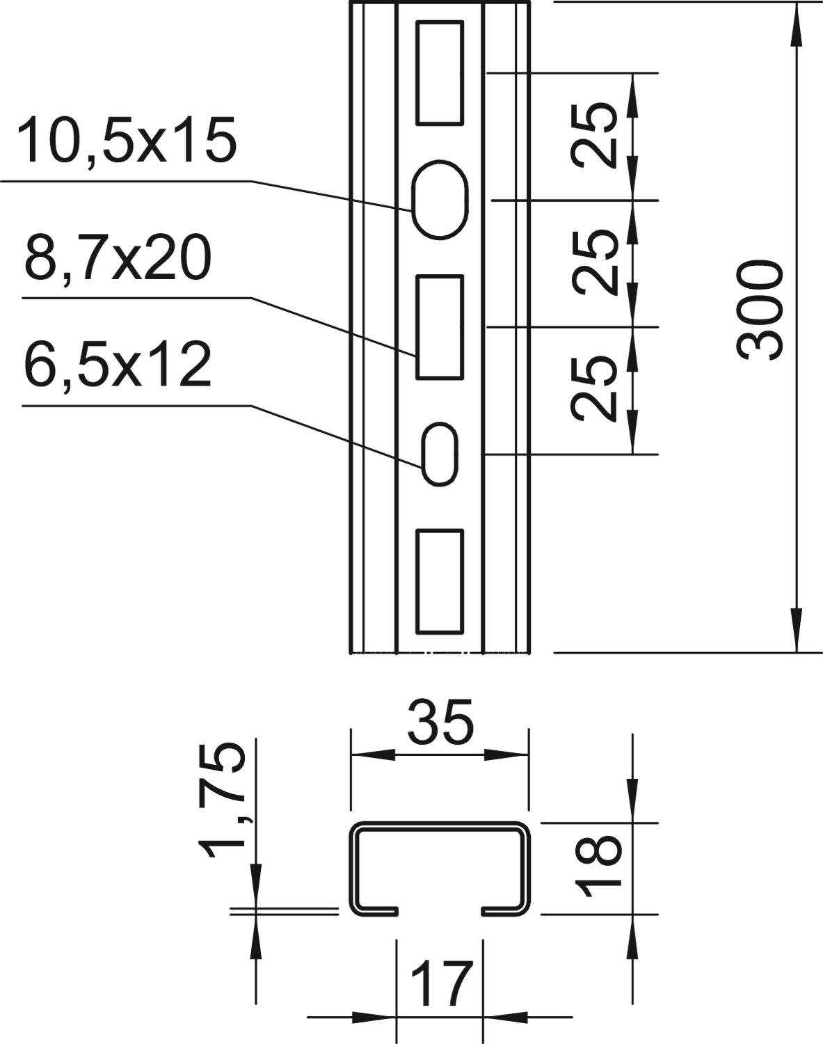 Profielrail CMS3518, sleuf 17 mm, FT, geperforeerd