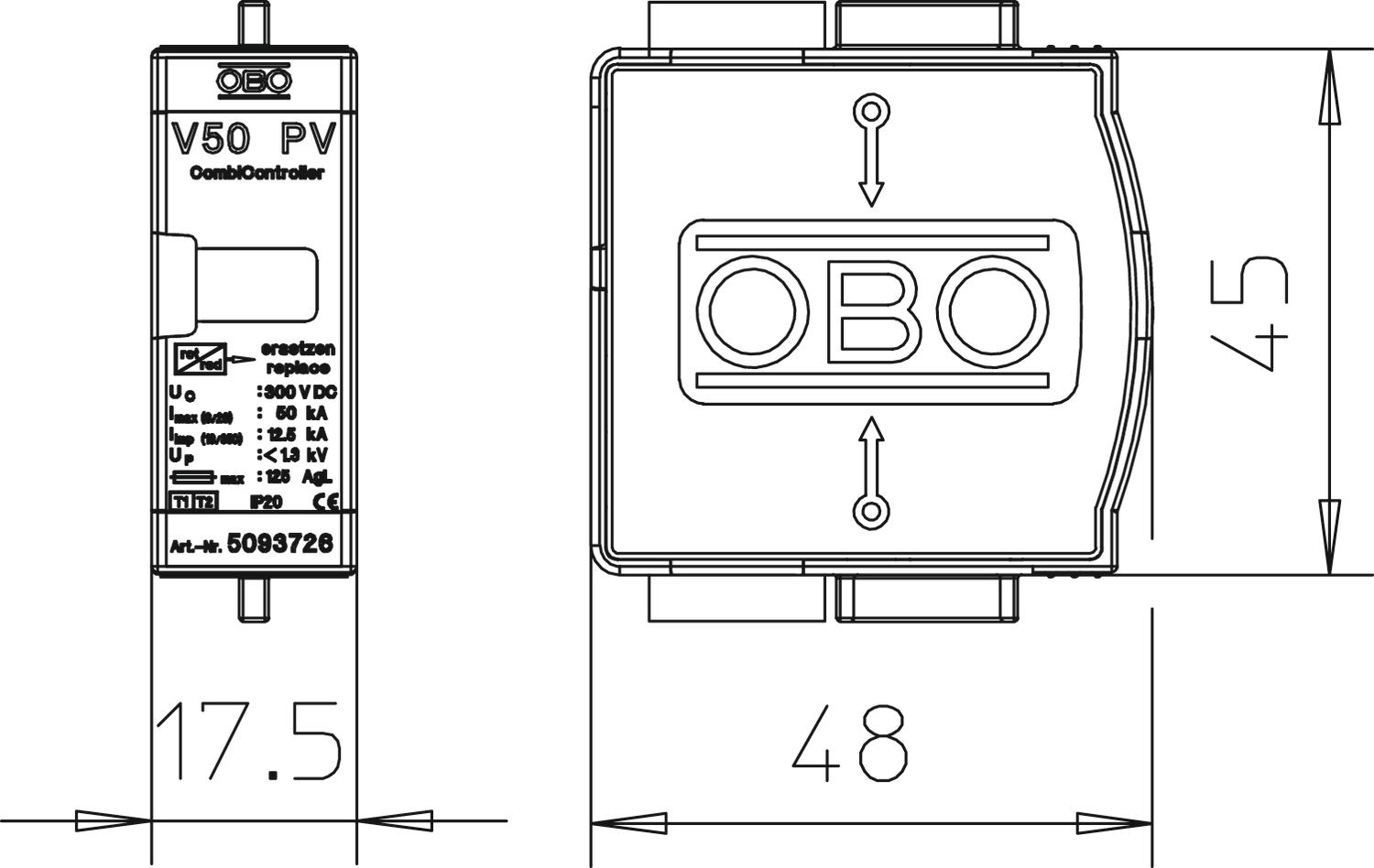 ProductbeschrijvingCombiController module - type 1+2 combi-afleider voor fotovoltaïsche installaties