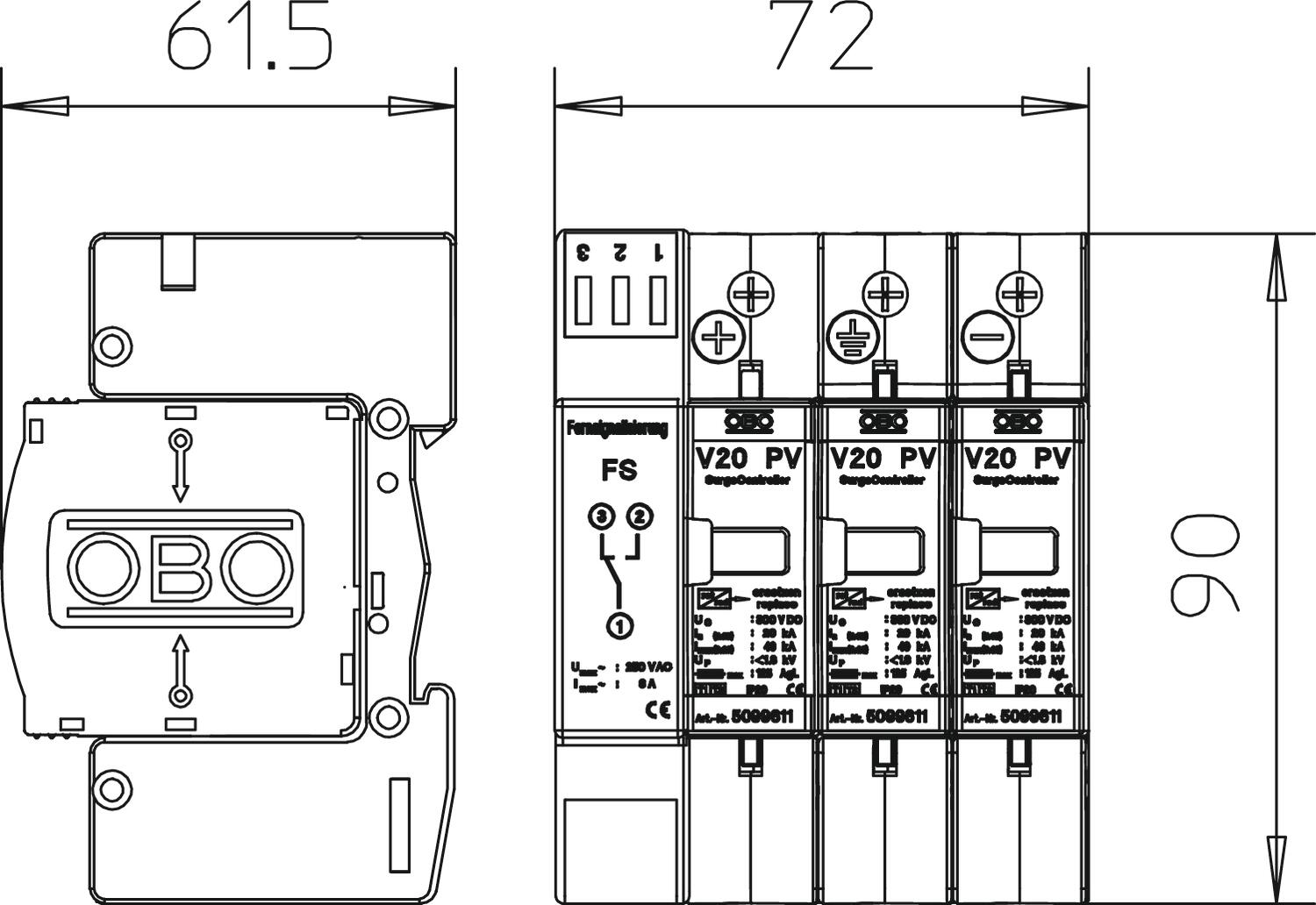ProductbeschrijvingV20 overspanningsafleider type 2 voor PV-installaties met FS-contact als potentiaalvrij wisselcontact