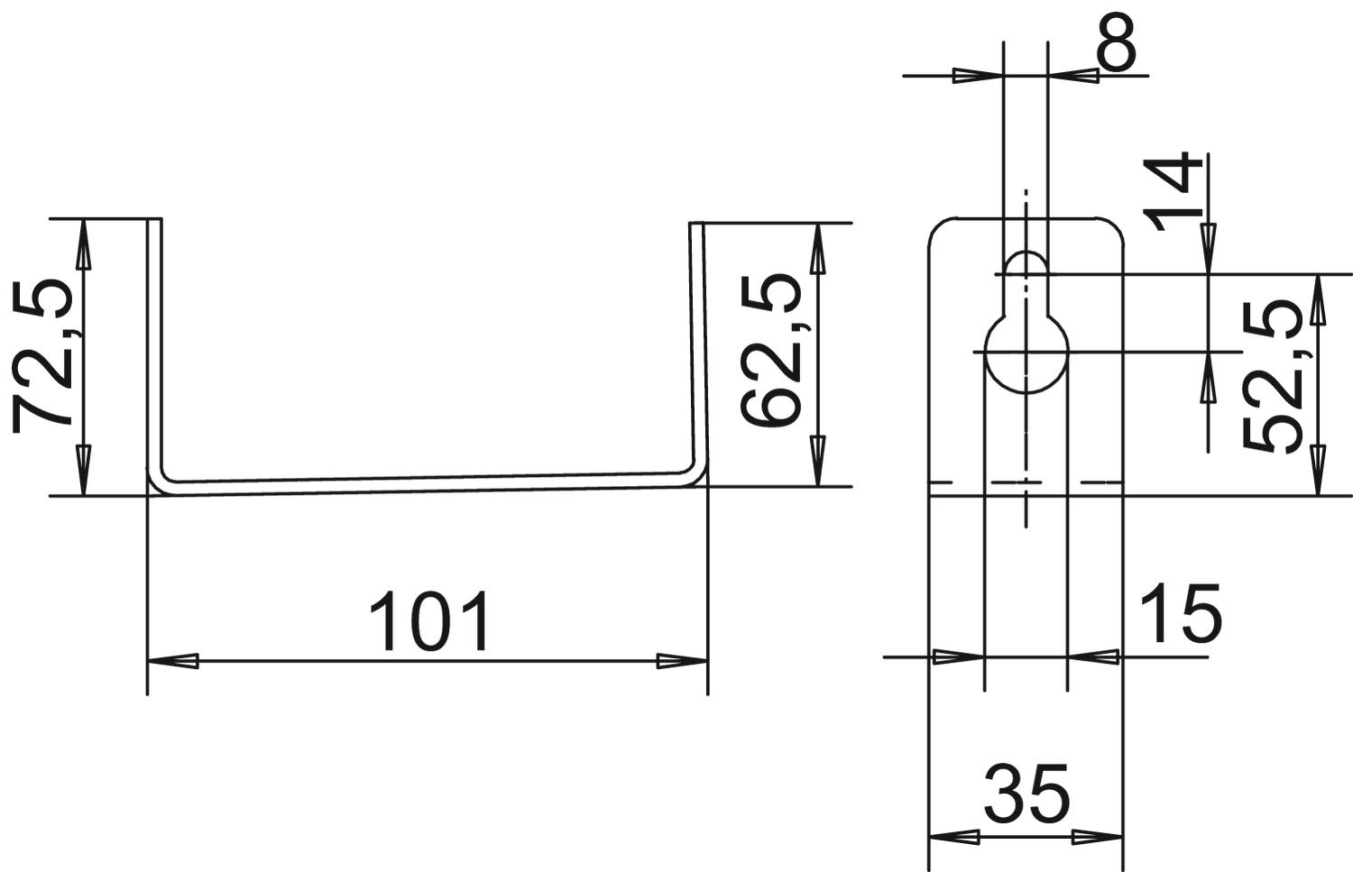 Afm. H 62,5 mm Afm. h 72,5 mm CO2-voetafdruk (GWP) van wieg tot poort 0,4298 kg CO2e / 1 Stuk Dimensie 101x72,5x35 Kanaalbreedte binnen 210 mm Kanaalhoogte binnen 105 mm Kleur zink Maat A 52,5 mm Maat B 101 mm Materiaal staal Oppervlak bandverzinkt Type bevestiging schroefbaar - Alle typen