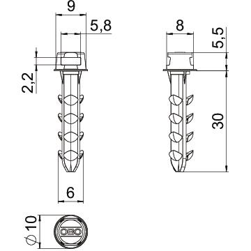 ProductbeschrijvingDe steekplug maakt het mogelijk een bevestigingsbandje (type 550 of 555) van maximaal 9 mm breed te gebruiken, waardoor een groot aantal verschillende kabels en buizen kunnen worden gemonteerd.