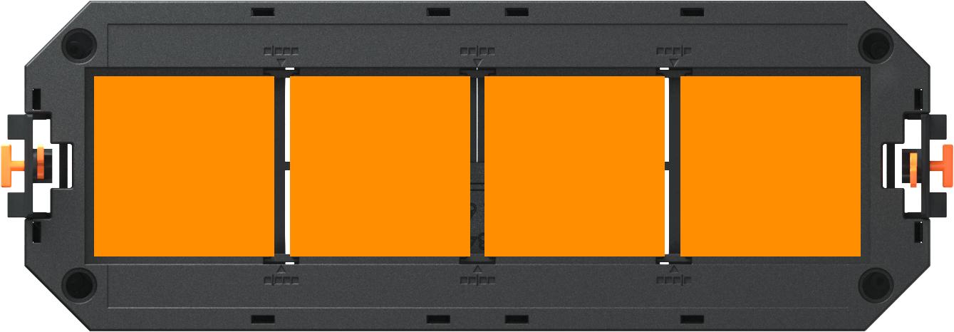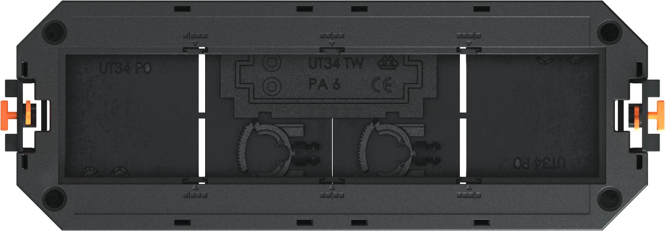 Universele drager met twee trekontlastingen, scheidingsschot en afdekplaat UT4 P4 voor inbouw van 4 Module 45 apparaten in apparatuurdrager OKB IT.
